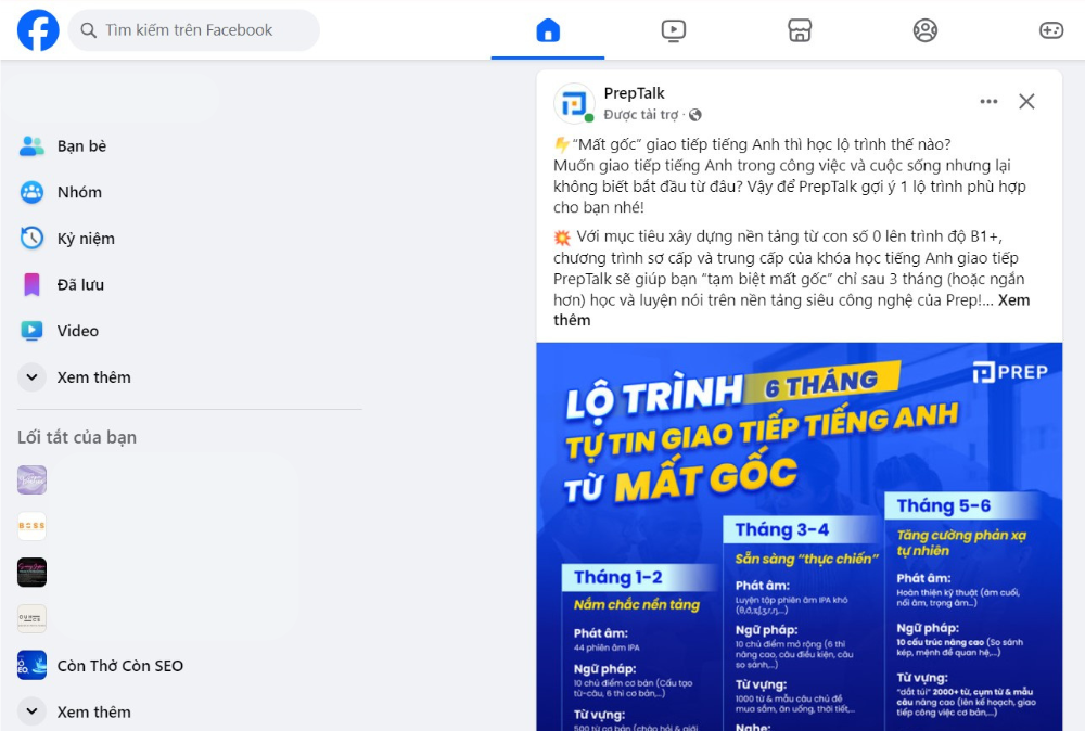 Quảng cáo trả phí hiển thị ở bảng tin và cột thông tin bên phải (khi sử dụng máy tính)