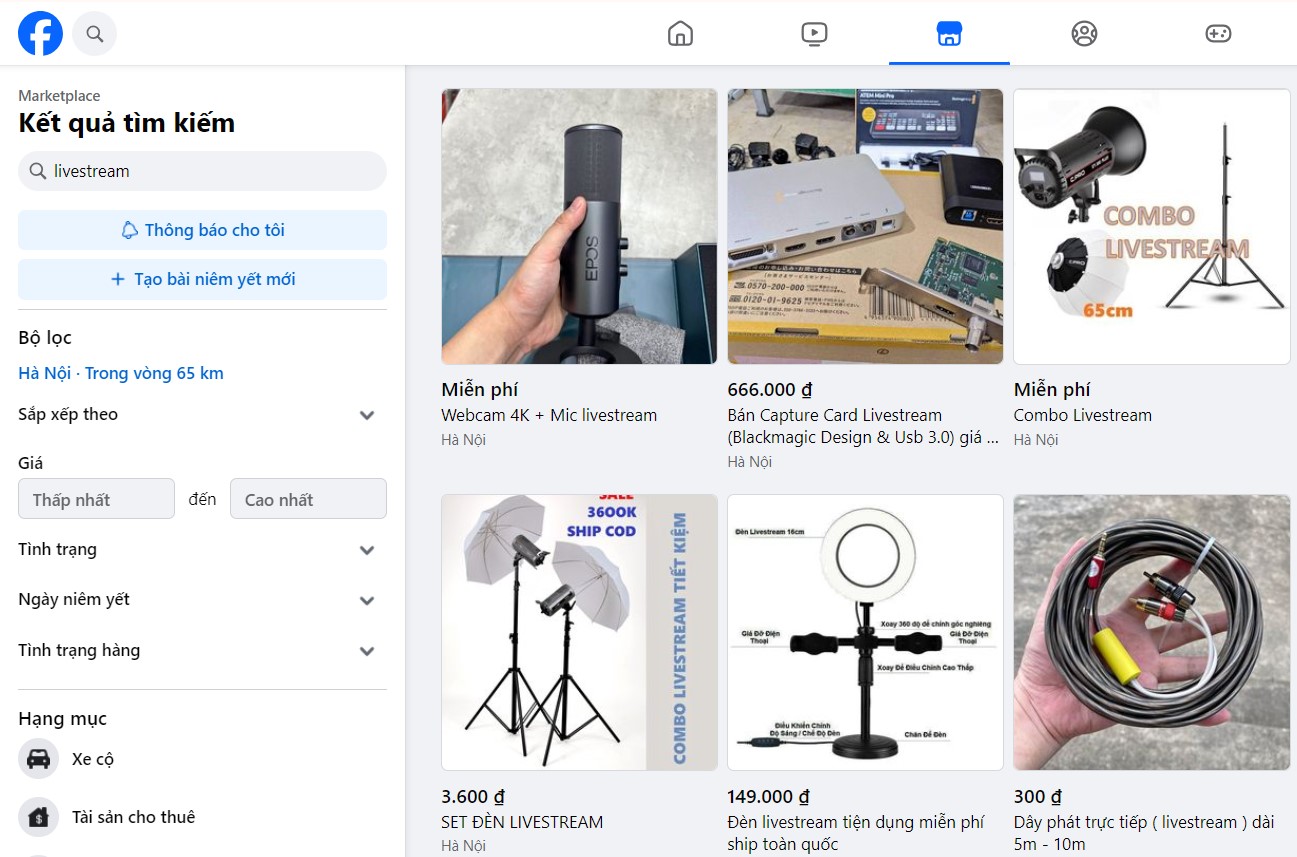 Marketplace là nơi doanh nghiệp có thể đăng bán sản phẩm trực tiếp trên Facebook, cho phép người dùng tìm kiếm và mua sắm ngay trên nền tảng. Sản phẩm sẽ được hiển thị trong các danh mục, giúp người mua dễ dàng tìm thấy và tiếp cận.